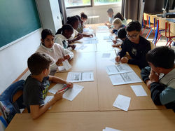 Les élèves de Mme Anaïs ont rédigé les recettes de crêpes et de cakes aux pommes qu'ils avaient préparées en classe pour les ventes de collation.