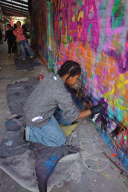 Les enfants ont eu l'occasion de visiter les ateliers de certains artistes, de visiter l'exposition actuelle et de s'essayer à la technique du graffiti.