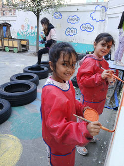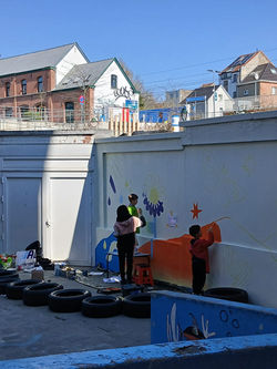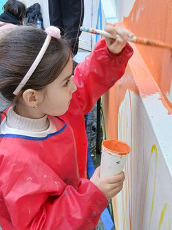 Cette semaine, l'artiste Laura et les enfants du cycle 5/8 ont peint la fresque de la cour intérieure.