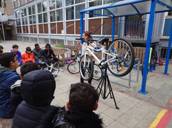 Lors de la semaine de la mobilité, nous avons proposé des ateliers parents-enfants. Au programme, circuit vélo et atelier mécanique.