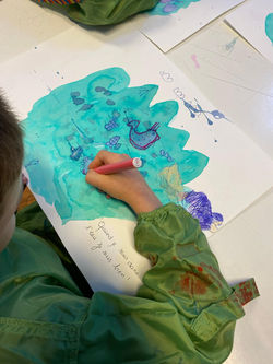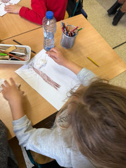 Munis de notre carte comme exemple, nous nous sommes rendus dans la «petite école», dans la classe de Madame Nathalie en 1re maternelle afin de faire réaliser cette carte par les plus petits.