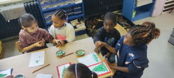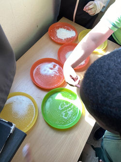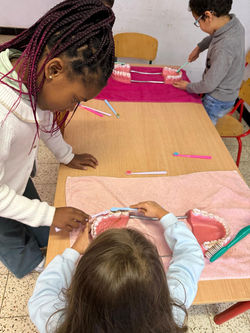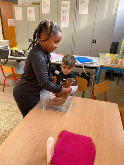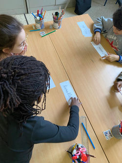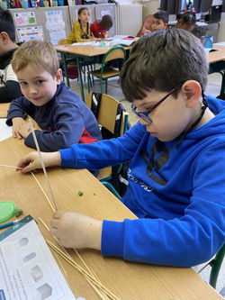 À l’inverse d'hier, nous devions écouter les différentes étapes à suivre pour notre bricolage avec l’aide des plus grands.