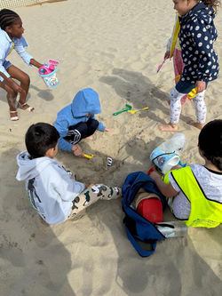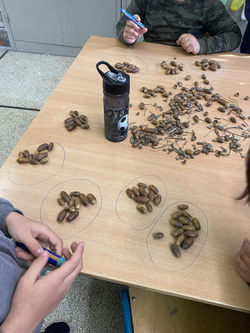 Les enfants sont partis à la recherche de trésors d'automne. Chaque groupe a reçu une boite avec la liste des éléments à récolter. Cette liste était soit dessinée, soit écrite.