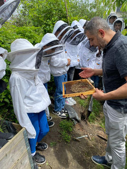 Ce jeudi, nous nous sommes rendus au Wiels pour visiter les ruches qui s'y trouvent.