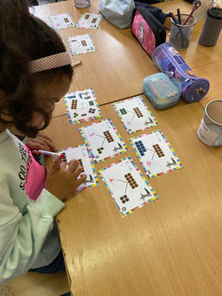 Nous avons aussi également utilisé nos Schématicos ainsi que des boîtes de 10 œufs pour certains, afin de bien visualiser le passage par la dizaine.